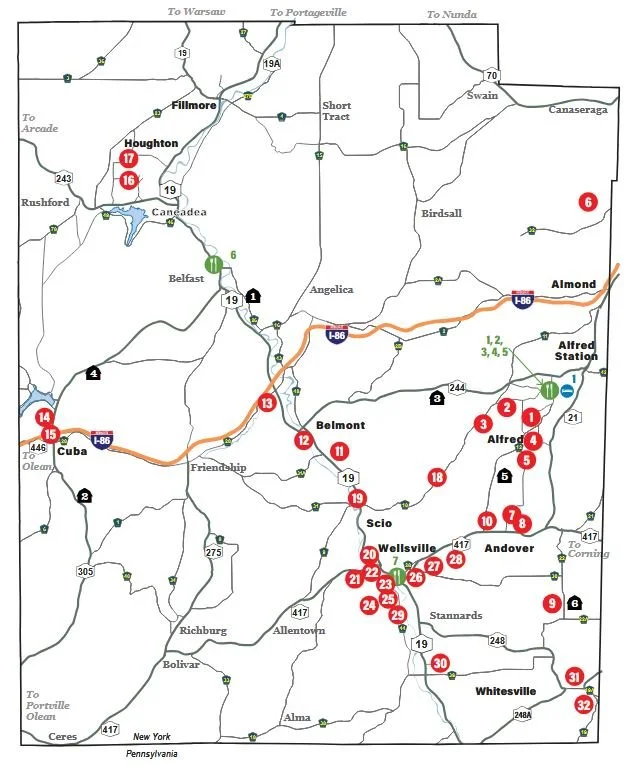 From Jamestown & Corning: Follow Route I-86, to either Almond Exit 33 or to Belmont Exit 30.